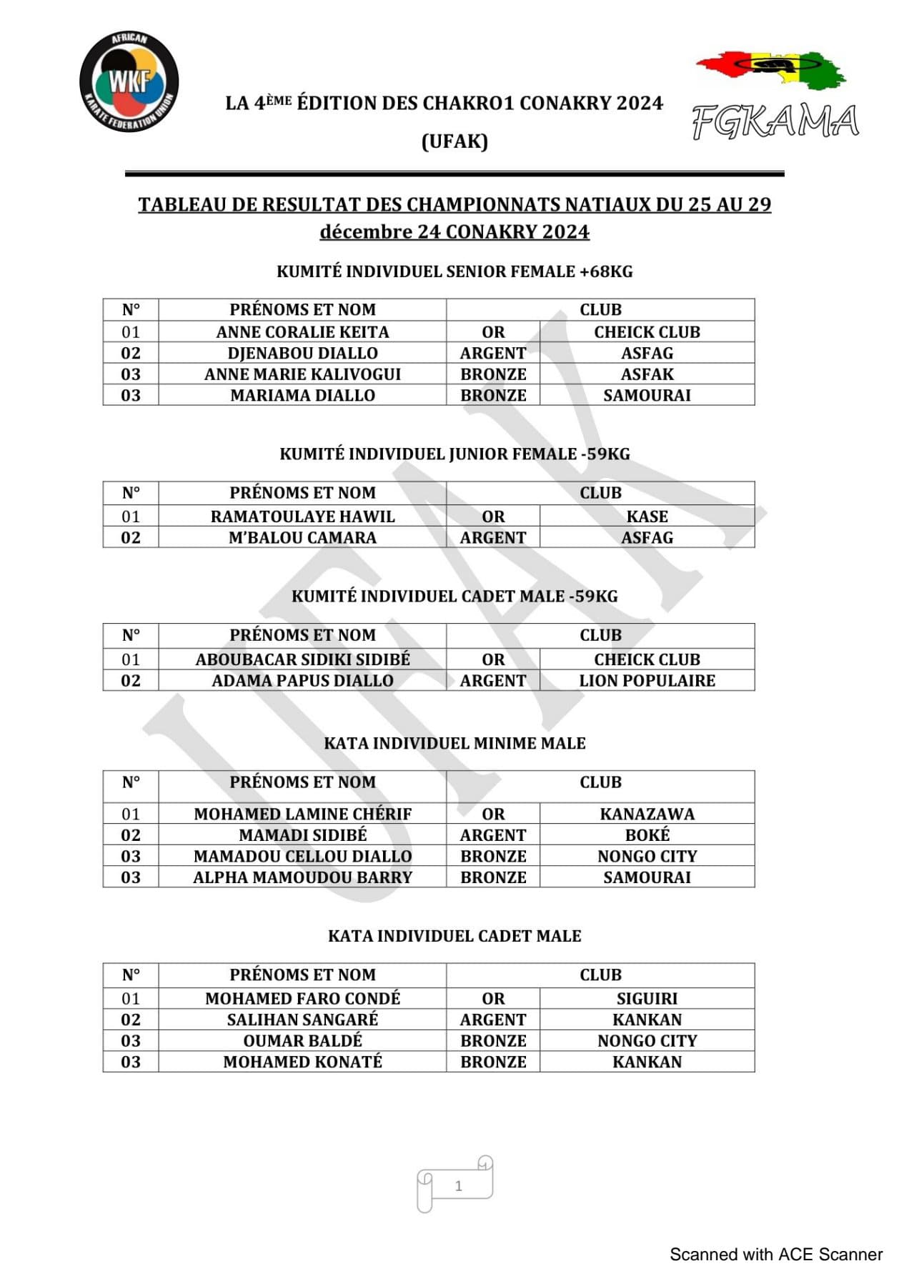 L’événement a également bénéficié d’une forte reconnaissance institutionnelle avec la présence du Ministre des Sports, Keamou Bogola Haba, et de l’Ambassadeur du Japon en Guinée, KATO Ryichi. Un soutien précieux pour la promotion et le rayonnement du karaté dans le pays.